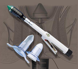 Fase 3:si inserisce la suturatrice monouso specifica al di sopra della sutura